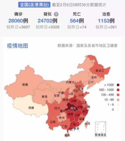 31個(gè)?。ㄗ灾螀^(qū)、直轄市)和新疆生產(chǎn)建設(shè)兵團(tuán)累計(jì)報(bào)告確診病例28018例,累計(jì)治愈出院1153例,隔離治療26302例(其中重癥病例3859例),累計(jì)死亡病例563例,現(xiàn)有疑似病例24702例。累計(jì)追蹤到密切接觸者282813人,尚在醫(yī)學(xué)觀察的密切接觸者186354人。