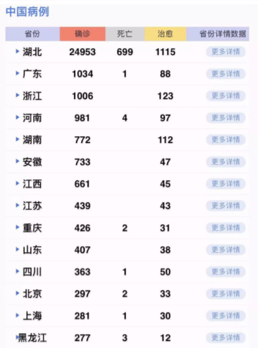 31個(gè)省(自治區(qū)、直轄市)和新疆生產(chǎn)建設(shè)兵團(tuán)累計(jì)報(bào)告,現(xiàn)有確診病例31774例(其中重癥病例6101例),累計(jì)治愈出院2050例,累計(jì)死亡722例,累計(jì)報(bào)告確診病例34546例(黑龍江省核減14例),現(xiàn)有疑似病例27657例。累計(jì)追蹤到密切接觸者345498人,尚在醫(yī)學(xué)觀察的密切接觸者189660人。