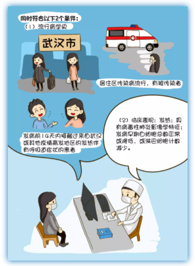 (1)流行病學(xué)史:在發(fā)病前兩周內(nèi)有武漢市或其他疫情高發(fā)地區(qū)的旅行或居住史,或發(fā)病前14天內(nèi)接觸過來自武漢或其他疫情高發(fā)地區(qū)的發(fā)熱伴有呼吸道癥狀的患者;居住區(qū)傳染病流行,有被傳染者。