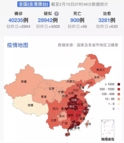 據(jù)31個?。ㄗ灾螀^(qū)、直轄市)和新疆生產(chǎn)建設(shè)兵團(tuán)報告,現(xiàn)有確診病例35982例(其中重癥病例6484例),累計治愈出院病例3281例,累計死亡病例908例,累計報告確診病例40171例(湖北核減87例,江西、甘肅各核減1例),現(xiàn)有疑似病例23589例。累計追蹤到密切接觸者399487人,尚在醫(yī)學(xué)觀察的密切接觸者187518人。