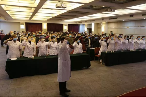 1月27日,在武漢市蔡甸區(qū)執(zhí)行新型冠狀病毒肺炎疫情援助任務(wù)的遼寧省醫(yī)療隊(duì),成立臨時(shí)黨支部,全體醫(yī)護(hù)人員向黨旗鄭重宣誓,堅(jiān)決打贏新冠肺炎疫情防控阻擊戰(zhàn)。