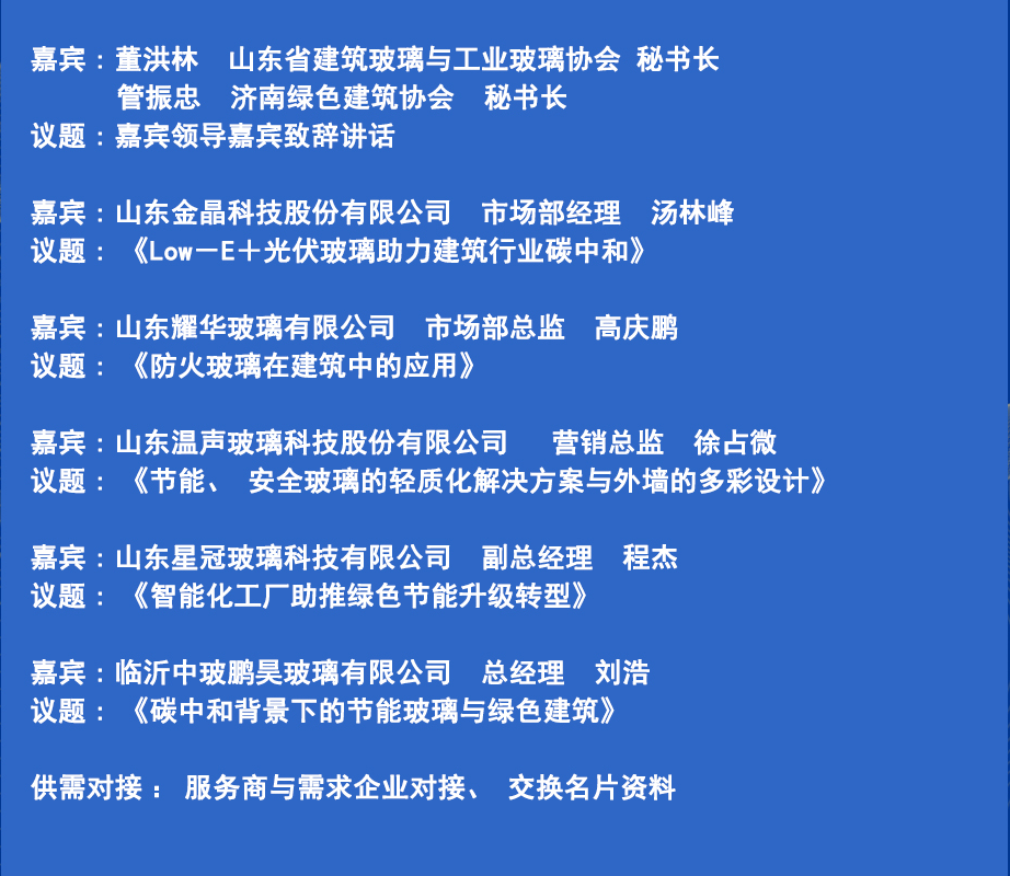 中國(濟(jì)南)節(jié)能玻璃助力綠色建筑高質(zhì)量發(fā)展專題論壇暨供需對接會