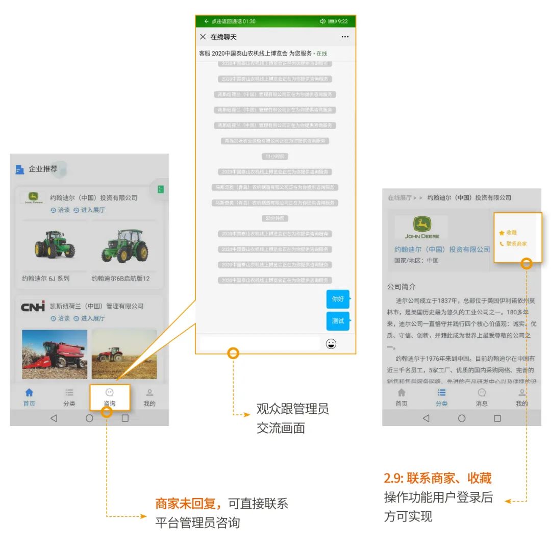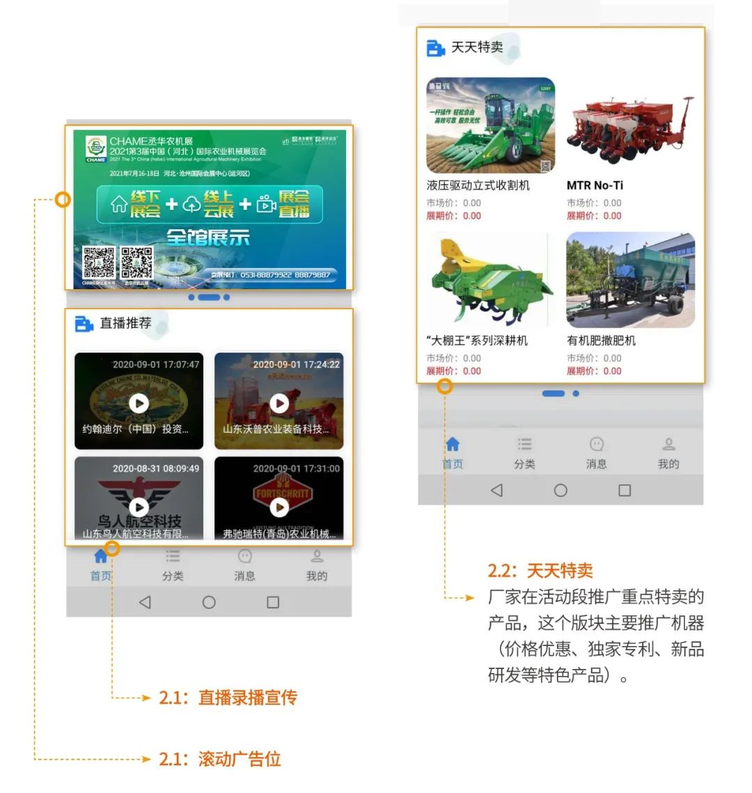 首個(gè)“農(nóng)機(jī)線(xiàn)上博覽會(huì)”平臺(tái)并且投入使用,設(shè)置直播推薦、品牌企業(yè)、特賣(mài)商城、地區(qū)專(zhuān)場(chǎng)4大版塊,開(kāi)發(fā)了機(jī)具展示、直播互動(dòng)、貿(mào)易洽談、線(xiàn)上交易4項(xiàng)功能,實(shí)現(xiàn)電腦、手機(jī)客戶(hù)端兩端融合,企業(yè)免費(fèi)入駐,觀眾掃碼即進(jìn),讓參展商和觀眾隨時(shí)溝通洽談。