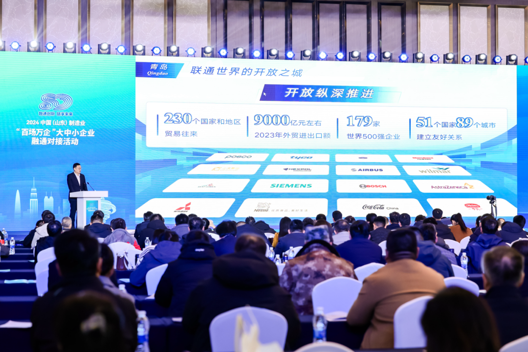 11月27日,2024中國(guó)(山東)制造業(yè)“百場(chǎng)萬(wàn)企”大中小企業(yè)融通對(duì)接活動(dòng)在青島舉辦。活動(dòng)以“融通創(chuàng)新 鏈享未來(lái)”為主題,旨在推動(dòng)創(chuàng)新鏈、產(chǎn)業(yè)鏈、資金鏈、人才鏈深度融合,助力鏈上企業(yè)融通創(chuàng)新,吸引了全省400多家企業(yè)參加。
