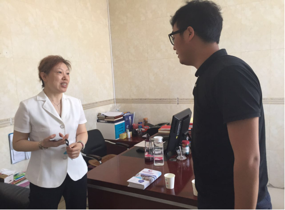 圖為邀請組工作人員與德百集團(tuán)廉總在洽談組團(tuán)參觀事宜