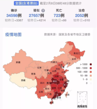 31個(gè)省(自治區(qū)、直轄市)和新疆生產(chǎn)建設(shè)兵團(tuán)累計(jì)報(bào)告,現(xiàn)有確診病例31774例(其中重癥病例6101例),累計(jì)治愈出院2050例,累計(jì)死亡722例,累計(jì)報(bào)告確診病例34546例(黑龍江省核減14例),現(xiàn)有疑似病例27657例。累計(jì)追蹤到密切接觸者345498人,尚在醫(yī)學(xué)觀察的密切接觸者189660人。