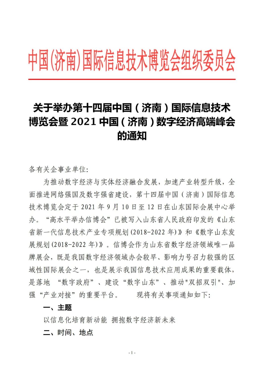 關(guān)于舉辦第十四屆中國(濟(jì)南)國際信息技術(shù)博覽會(huì)暨2021中國(濟(jì)南)數(shù)字經(jīng)濟(jì)高端峰會(huì)的通知