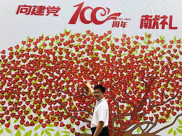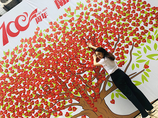 今日,公司在前臺(tái)一早就擺放上美麗的鮮花,并在小廣場外設(shè)立了慶祝建黨100周年祝福墻,公司員工紛紛在心型卡片上寫下祝福語粘貼到墻上,以示對(duì)黨的祝福。
