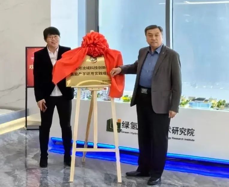 聯(lián)盟氫專委副秘書長李東峰、常景彩院長共同為基地揭牌。