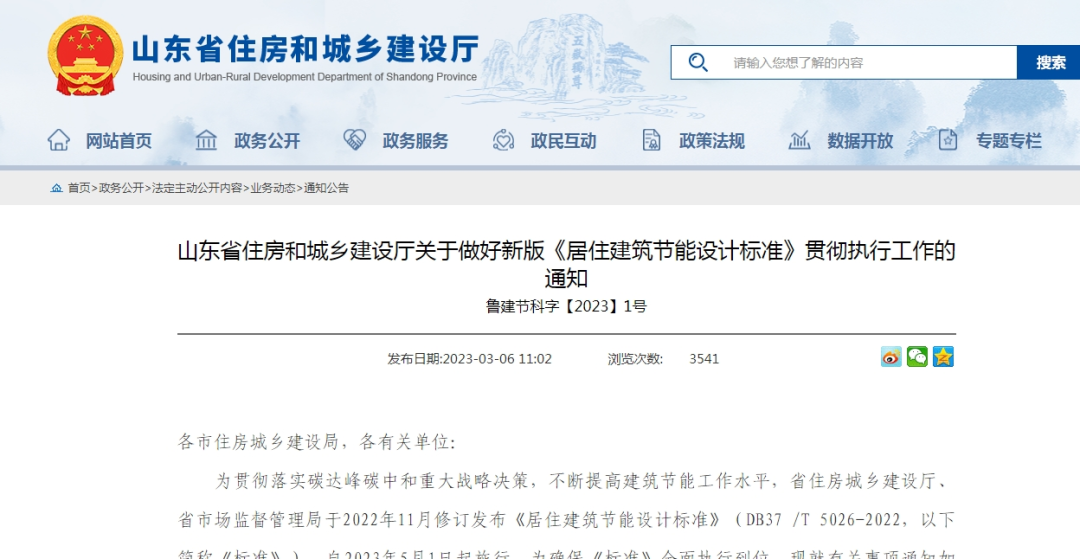 2023年5月,正式實施山東省新版《居住建筑節(jié)能設(shè)計標(biāo)準(zhǔn)》。該標(biāo)準(zhǔn)進一步強化節(jié)能措施,能效水平提升30%,在全國各省份中率先達到節(jié)能率83%設(shè)計要求。
