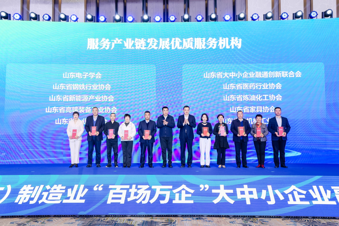 會(huì)上,啟動(dòng)了全國(guó)中小企業(yè)服務(wù)“一張網(wǎng)”互聯(lián)互通山東建設(shè)試點(diǎn),發(fā)布了“魯鏈全球”平臺(tái),6家企業(yè)進(jìn)行了戰(zhàn)略合作協(xié)議簽約。同時(shí),為十大服務(wù)產(chǎn)業(yè)鏈發(fā)展優(yōu)質(zhì)龍頭企業(yè)和十大服務(wù)產(chǎn)業(yè)鏈發(fā)展優(yōu)質(zhì)服務(wù)機(jī)構(gòu)頒獎(jiǎng),發(fā)起“十鏈百群萬(wàn)企 主流媒體山東行”暨《“鏈”接山東》宣傳行動(dòng)倡議,山東省工業(yè)和信息化廳、山東廣播電視臺(tái)攜手打造的全省首檔融鏈固鏈大型融媒體訪談欄目《“鏈”接山東》正式開播。