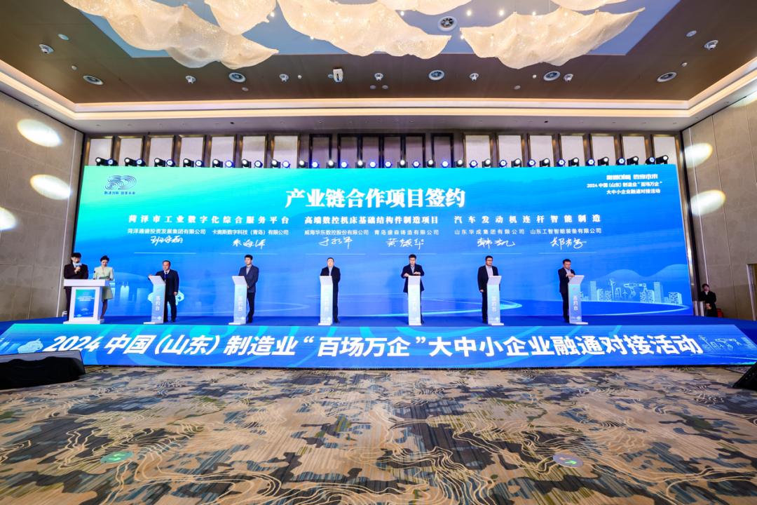 11月27日,2024中國(guó)(山東)制造業(yè)“百場(chǎng)萬(wàn)企”大中小企業(yè)融通對(duì)接活動(dòng)在青島舉辦。活動(dòng)以“融通創(chuàng)新 鏈享未來(lái)”為主題,旨在推動(dòng)創(chuàng)新鏈、產(chǎn)業(yè)鏈、資金鏈、人才鏈深度融合,助力鏈上企業(yè)融通創(chuàng)新,吸引了全省400多家企業(yè)參加。