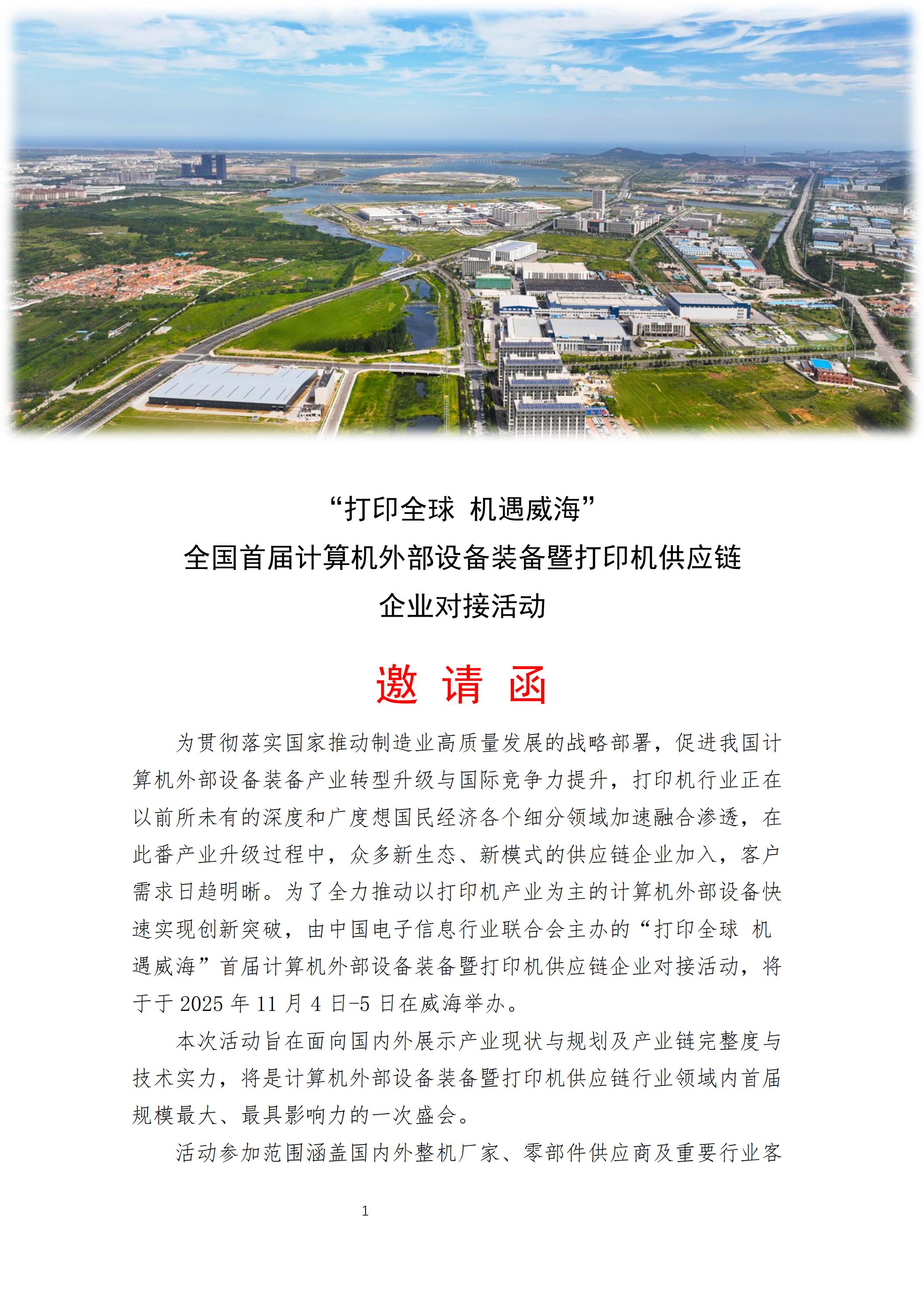 官方邀請函來了!全國首屆計算機外部設(shè)備裝備暨打印機供應(yīng)鏈?zhǔn)?1月在威海舉辦